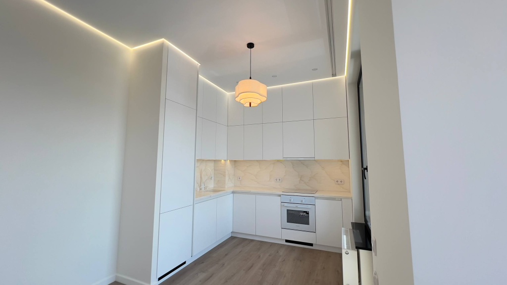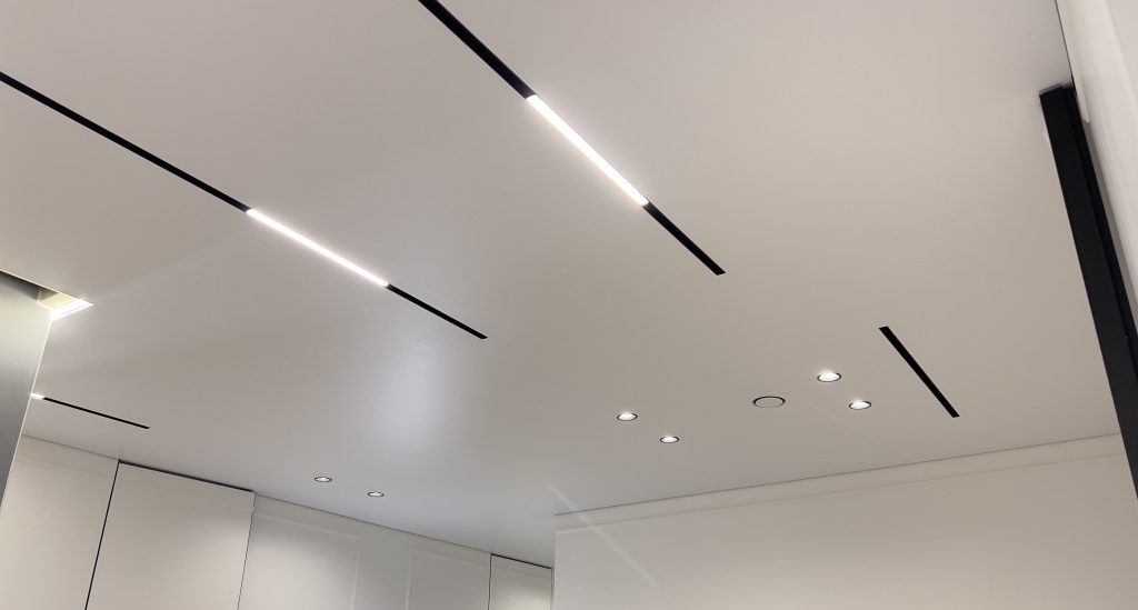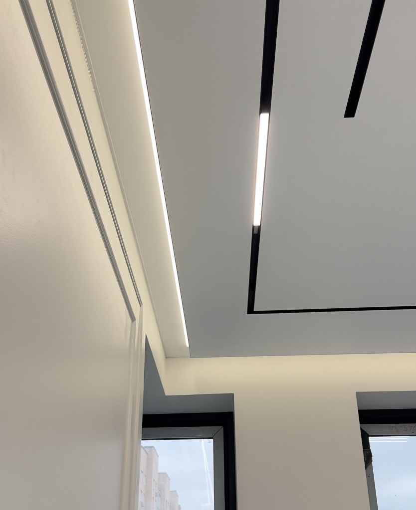 Матовый натяжной потолок с теневым примыканием.